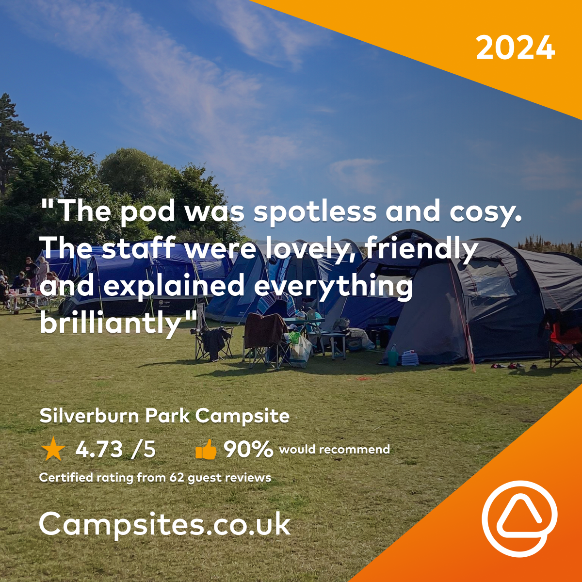 Situated in Fife, we are an award winning, small & quiet family-friendly campsite set in the beautiful 27-acre Silverburn Park offering glamping pods, campervan pitches & tent pitches. Great location surrounded by golf courses & five minutes from the beach.