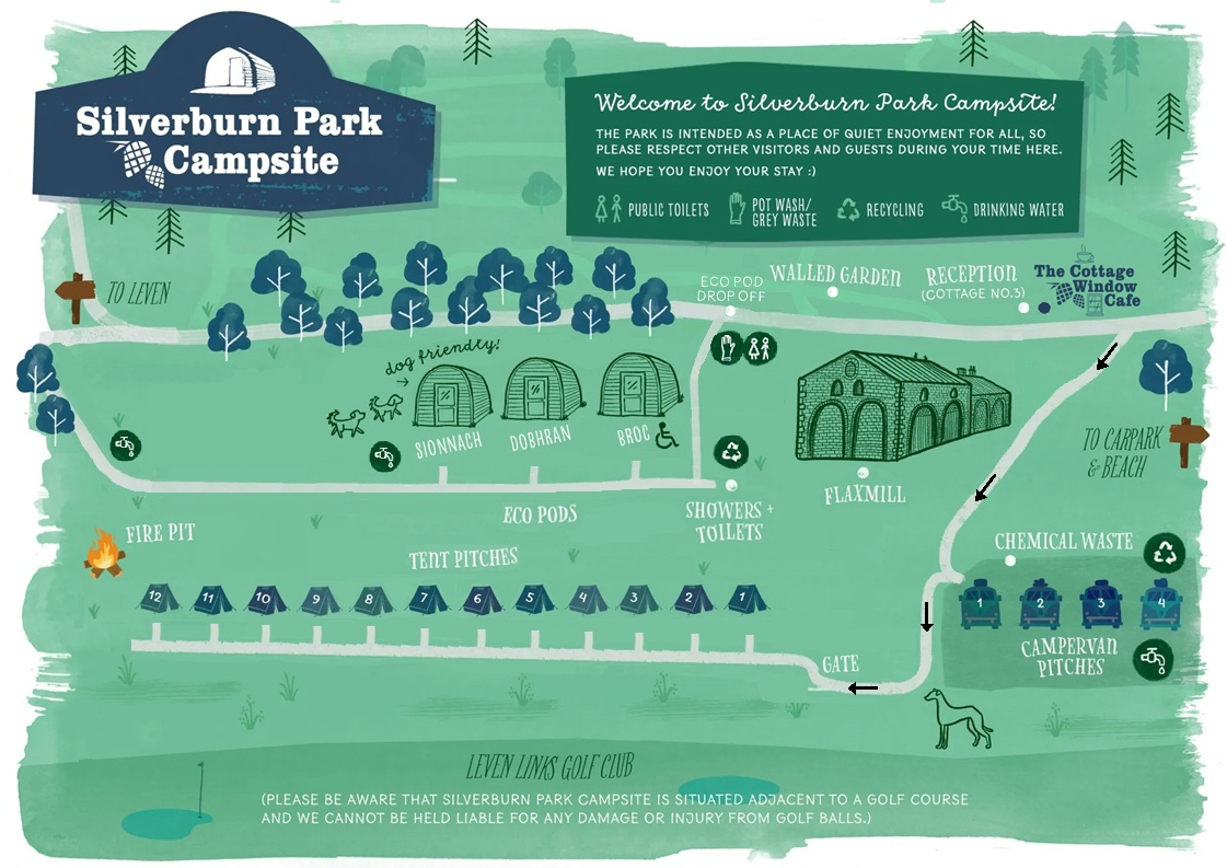 Disclaimer: please be aware that Silverburn Park Campsite is situated adjacent to a golf course