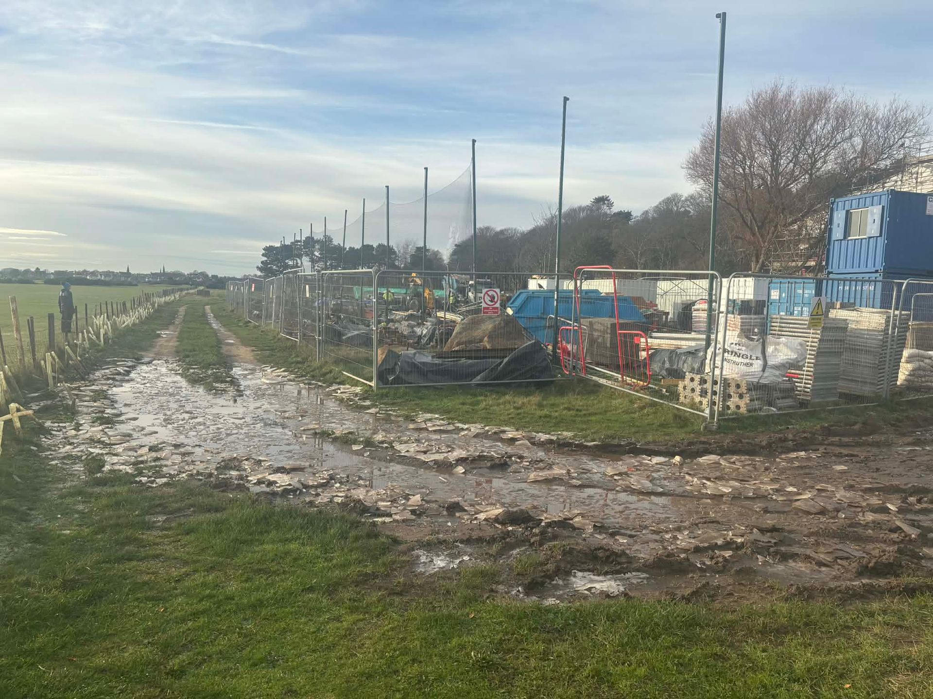 Entrance to campervan area opposite flaxmill site entrance. Muddy conditions in wet weather.