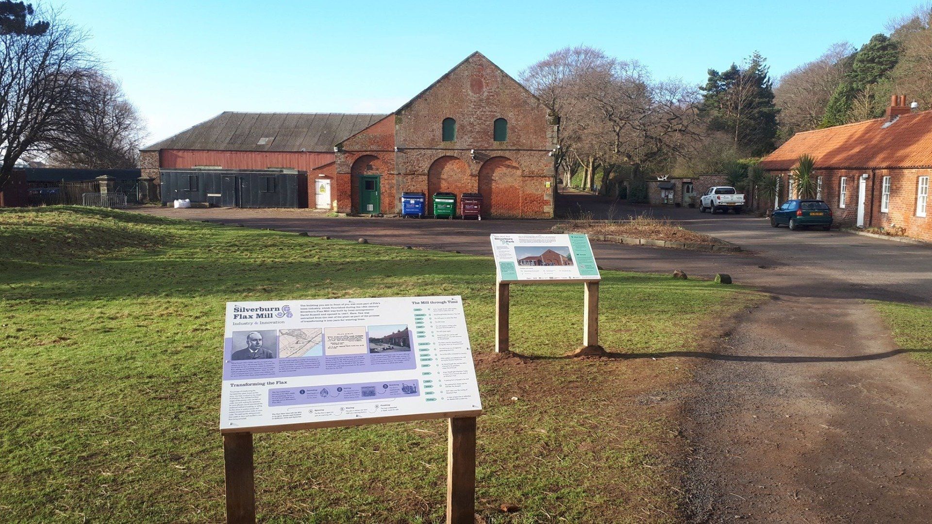 We are proud to show off the latest addition to the Park - interpretation boards facing the Flax Mill that share some of the history of the mill and the Park, as well our vision for the future! A huge thanks to the team at